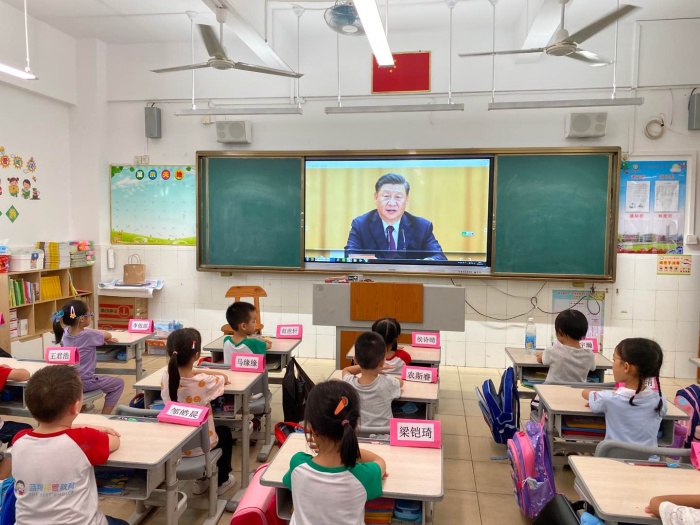 全國(guó)抗擊新冠肺炎疫情表彰大會(huì)于9月8日上午在北京人民大會(huì)堂隆重舉行。中共中央總書記、國(guó)家主席、中央軍委主席習(xí)近平向國(guó)家勛章和國(guó)家榮譽(yù)稱號(hào)獲得者頒授獎(jiǎng)?wù)虏l(fā)表重要講話。9月11日下午,南頭鎮(zhèn)中心小學(xué)組織全體學(xué)生觀看了重播。