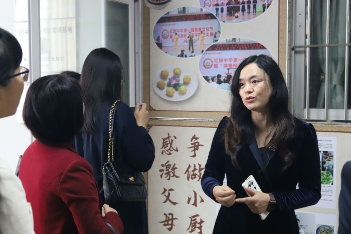 為了更好地交流,順德區(qū)容桂鎮(zhèn)紅旗中學(xué)陳亞玲校長、鐘春玲副校長、陳國佳德育主任等行政團(tuán)隊(duì)精心準(zhǔn)備了勞動(dòng)實(shí)踐基地實(shí)地參觀、勞動(dòng)教育課題專題講座、經(jīng)驗(yàn)分享與答疑的優(yōu)質(zhì)交流活動(dòng),并親自引領(lǐng)老師們到相應(yīng)的場室參觀學(xué)習(xí)。參加活動(dòng)的老師們專注地聆聽陳校長的介紹,認(rèn)真記錄開展勞動(dòng)教育活動(dòng)的細(xì)節(jié),感受陳校長對(duì)學(xué)校勞動(dòng)教育高瞻遠(yuǎn)矚的總體設(shè)計(jì),以此進(jìn)行思考借鑒。