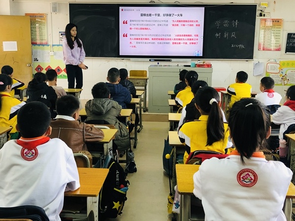為開展好此次學(xué)雷鋒宣傳教育活動(dòng),德育處組織各中隊(duì)輔導(dǎo)員在班隊(duì)活動(dòng)課繼續(xù)開展“學(xué)雷鋒,樹新風(fēng)”主題教育。班隊(duì)課以介紹雷鋒生平、雷鋒感人事跡和雷鋒的奉獻(xiàn)精神為主。通過對(duì)雷鋒事跡的學(xué)習(xí),隊(duì)員們體會(huì)到了雷鋒的高尚人格和崇高品質(zhì);通過誦讀雷鋒名言和雷鋒日記,隊(duì)員們感受到了雷鋒的集體主義思想和全心全意為人民服務(wù)的精神,并明白雷鋒精神永遠(yuǎn)不會(huì)過時(shí)。