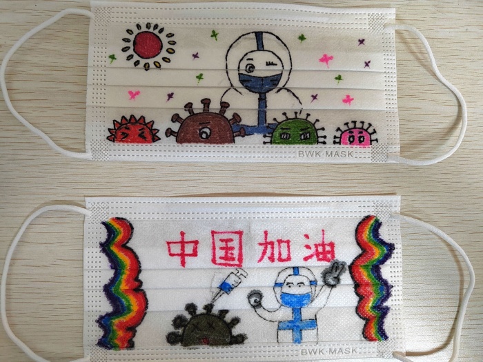 活動得到了同學(xué)們的積極響應(yīng),孩子們發(fā)揮自己的聰明才智,把愛心融入在創(chuàng)意口罩作品中,將自己的奇思妙想用畫筆繪制了系列口罩畫,在不影響口罩正常使用的前提下,對口罩進行創(chuàng)意設(shè)計,用詼諧幽默等風(fēng)格表達如何在疫情期間做好個人防護,時刻保持良好心態(tài),行動上疫情防護的口罩不能摘,思想上防范意識的“口罩”更不能摘。
