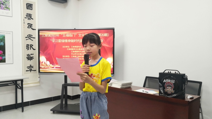 為進(jìn)一步加深社員們對(duì)雷鋒精神的理解,激勵(lì)社員們積極弘揚(yáng)踐行雷鋒精神并在新時(shí)代下賦予雷鋒精神更加豐富而深刻的內(nèi)涵,助力社員們?cè)诶卒h精神的滋養(yǎng)陪伴下更加健康茁壯地成長(zhǎng),3月18日上午,三角鎮(zhèn)三角小學(xué)海鷗文學(xué)社的部分社員在中山市文化館三角鎮(zhèn)分館參加了由三角鎮(zhèn)宣傳辦、三角鎮(zhèn)宣傳文化中心(圖書(shū)館)等單位聯(lián)合主辦的三角鎮(zhèn)2023年“五福臨門”文化周活動(dòng)(第20期)“學(xué)習(xí)雷鋒精神做時(shí)代新人”共讀活動(dòng)。