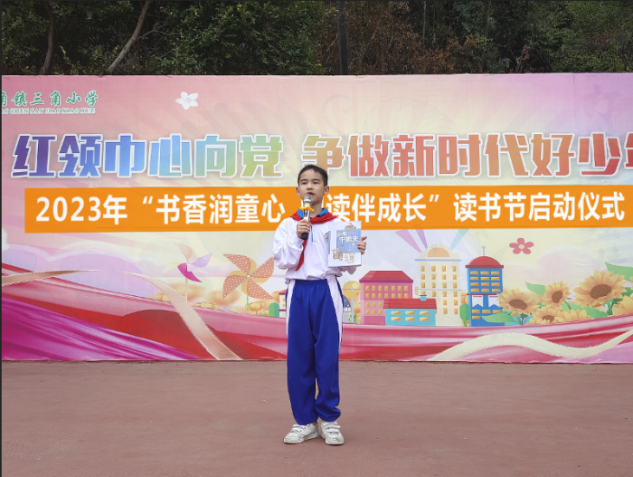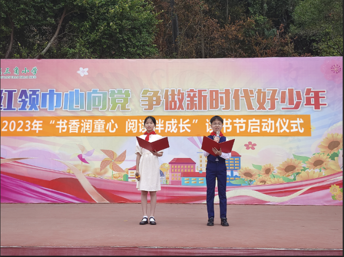 啟動(dòng)儀式第二項(xiàng),由三角小學(xué)副校長(zhǎng)黃麗娟宣讀《三角鎮(zhèn)三角小學(xué)2023年“書香潤(rùn)童心,閱讀伴成長(zhǎng)”讀書節(jié)活動(dòng)方案》。黃副校長(zhǎng)向全體同學(xué)發(fā)出倡議,號(hào)召同學(xué)們積極參加讀書節(jié)的各項(xiàng)活動(dòng),將知識(shí)運(yùn)用到學(xué)習(xí)及生活當(dāng)中,努力做到知行合一。