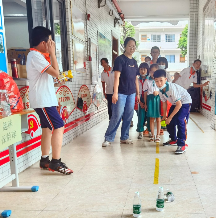 上午9:10分,游園活動(dòng)開(kāi)始了!校園頓時(shí)沸騰起來(lái),昔日書(shū)聲瑯瑯的校園,變成了一個(gè)處處有樂(lè)趣,處處有驚喜的游樂(lè)園。謙和樓小廣場(chǎng)、謙和樓一樓、書(shū)法室,校園各個(gè)角落都有游園項(xiàng)目。孩子們不分年級(jí)游園,每個(gè)孩子都可以自由地選擇到不同的場(chǎng)地參與活動(dòng)。看他們充滿(mǎn)驚喜的表情,意趣盎然地邁進(jìn)了一個(gè)個(gè)“小景區(qū)”: 掌上明珠、占領(lǐng)陣地、海獅頂球、步步為營(yíng)、一鼓作氣、一箭穿心、一擲千金等游戲備受矚目,今年的活動(dòng)本著小型多樣的游戲原則,既活潑、健康,又新穎有趣,還綜合了智力、體育等各個(gè)方面,受到孩子們的熱烈歡迎。