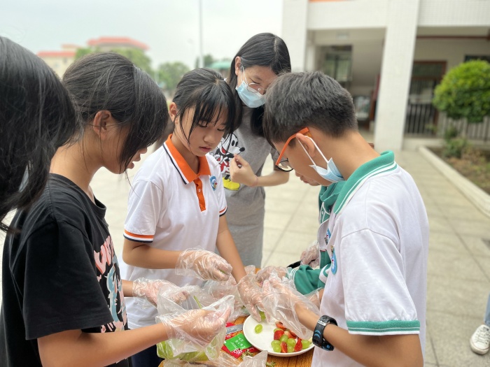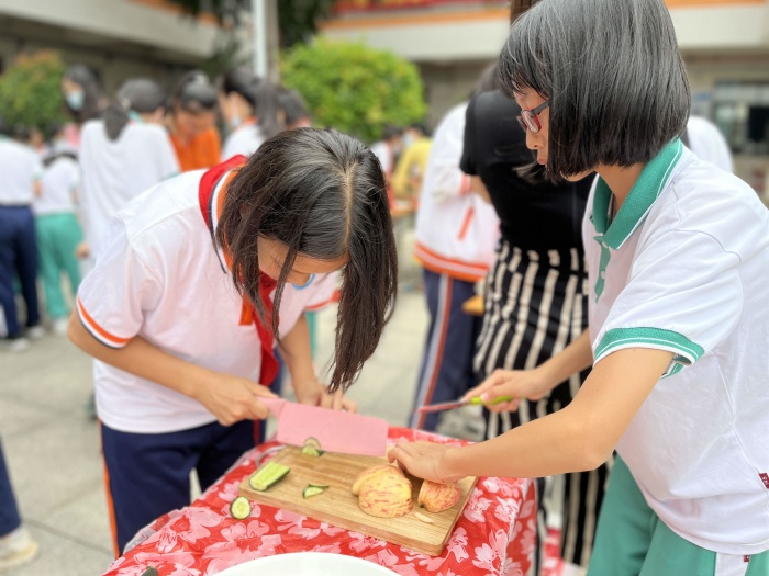活動(dòng)前,各班學(xué)生紛紛利用周六日在家里勤加練習(xí)。活動(dòng)開(kāi)始了,大紅的西瓜、火龍果、小番茄、紅提,青綠的葡萄、獼猴桃、黃瓜、牛油果,金黃的橘子、梨子、橙子、楊桃等各種水果,在組長(zhǎng)的帶領(lǐng)下,各組分工明確,密切配合,有條不紊地進(jìn)行著作品的制作。