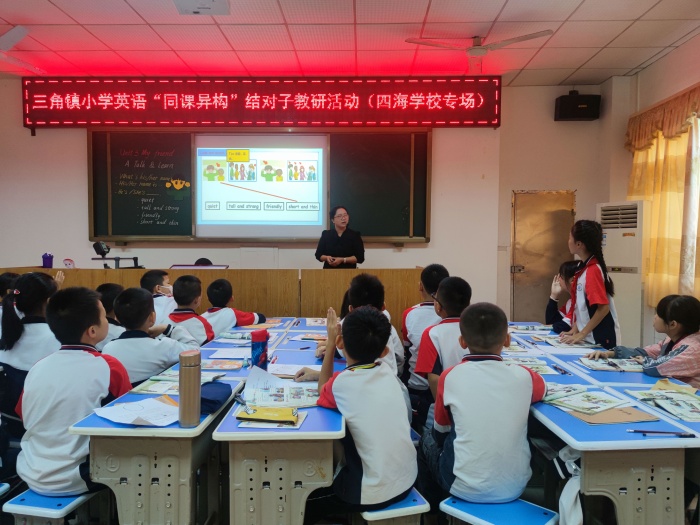 為了深入英語課堂研究,學(xué)習(xí)人教版新教材,并促進(jìn)三角鎮(zhèn)各校英語教師之間相互學(xué)習(xí),不斷提高教師們的教學(xué)水平和業(yè)務(wù)素質(zhì),三角鎮(zhèn)沙欄小學(xué)與四海學(xué)校、中心小學(xué)、三角小學(xué)英語科組聯(lián)合結(jié)成教研小組,于11月16日上午在四海學(xué)校舉辦本學(xué)期課堂教學(xué)教研活動(dòng)。