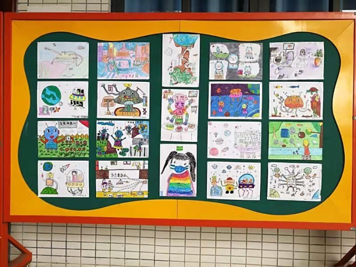 首先,各班組織學(xué)生開(kāi)展了“科技創(chuàng)新繪畫(huà)”比賽活動(dòng),要求人人發(fā)揮想象,動(dòng)手畫(huà)一畫(huà)。然后,由學(xué)校的專(zhuān)職美術(shù)老師在課堂上指導(dǎo)學(xué)生如何創(chuàng)新、暢想,緊扣主題進(jìn)行科技創(chuàng)新繪畫(huà)。最后,各班班主任在11月13日前評(píng)選出5份創(chuàng)意新穎的作品上交到學(xué)校進(jìn)行評(píng)比。作品內(nèi)容精彩紛呈,有的學(xué)生以創(chuàng)新能源為主題,有的學(xué)生以環(huán)保為主題,有的學(xué)生以未來(lái)為主題,通過(guò)蠟筆、水彩筆畫(huà)等形式反映了未來(lái)科技和未來(lái)世界,一幅幅科幻畫(huà)展現(xiàn)了一個(gè)個(gè)充滿(mǎn)想象的世界,從而開(kāi)啟學(xué)生們心中美好的愿景。隨后,由領(lǐng)導(dǎo)和美術(shù)老師認(rèn)真仔細(xì)地評(píng)審,36份作品脫穎而出獲得一等獎(jiǎng),54份獲得二等獎(jiǎng)。獲獎(jiǎng)作品在謙和樓一樓進(jìn)行了展出。