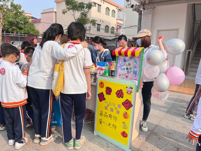 在活動現(xiàn)場,師生的共同布置,一個個頗具特色的展臺呈現(xiàn)在眼前,所展示的商品種類繁多,文具、書籍、盆栽,應(yīng)有盡有。每個愛心攤位前“小賣家”使出渾身解數(shù),傾情推銷,“小買家”則精挑細(xì)選,討價還價,現(xiàn)場人頭攢動,熱鬧非凡,吆喝聲、叫賣聲、歡笑聲不絕于耳。一件件充滿愛心的義賣品,一張張愛心蕩漾的笑臉,使校園一下子匯成了歡樂的海洋,愛心的港灣。