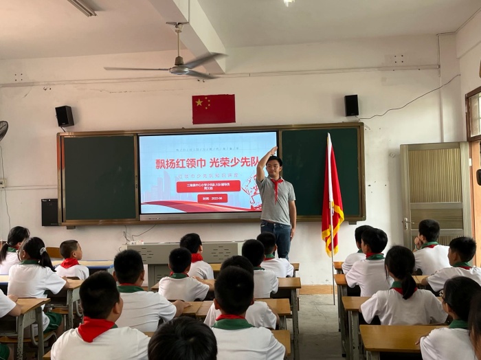 為了讓學(xué)生了解少先隊(duì),中山市三角鎮(zhèn)中心小學(xué)少先隊(duì)大隊(duì)輔導(dǎo)員周文彪老師給五年級學(xué)生開展了“紅領(lǐng)巾少先隊(duì)知識講座”。周老師先后介紹了少先隊(duì)的發(fā)展歷程、少先隊(duì)隊(duì)徽、隊(duì)旗以及入隊(duì)誓詞,也給同學(xué)們演示如何讓正確佩戴紅領(lǐng)巾。
