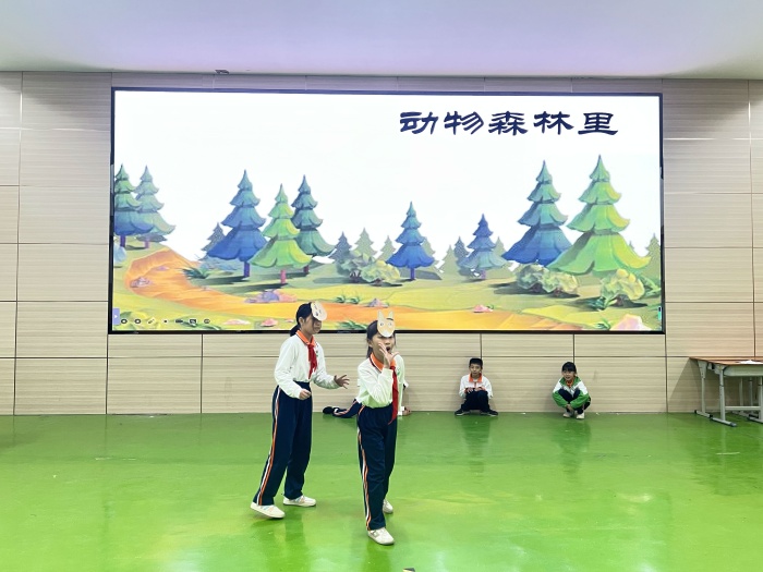 同學(xué)們精心準(zhǔn)備排演,上演了《陶罐和鐵罐》《白雪公主》《狐假虎威》等精彩劇目,傲慢的鐵罐在御廚房里對(duì)同伴們指手畫腳,讓人恨得牙癢癢;美麗的皇后對(duì)著魔鏡計(jì)劃著她那邪惡的計(jì)謀;狡猾的狐貍在老虎面前洋洋得意……將經(jīng)典的童話故事從課本搬上舞臺(tái),學(xué)生們的精彩演出,贏得了臺(tái)下觀眾陣陣掌聲??粗枧_(tái)上一個(gè)個(gè)鮮活的人物,臺(tái)下的同學(xué)們時(shí)而屏息凝神,時(shí)而開懷大笑,時(shí)而掌聲雷動(dòng),無不沉浸在每場(chǎng)演出的特有氛圍中。