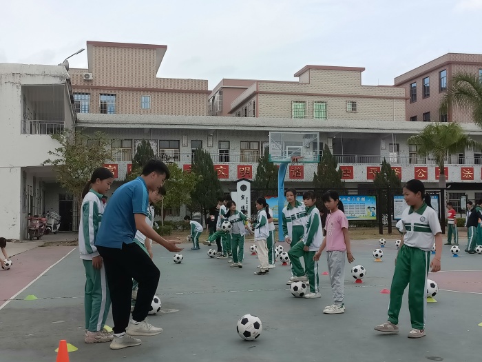 最后是吳康明老師執(zhí)教的特色體育課《足球-腳內(nèi)側(cè)踢地滾球》。吳老師提前布置了上課場(chǎng)地,上課時(shí)將學(xué)生分好組,講明體育課要求后,以“桃花朵朵開(kāi)”游戲方式熱身,通過(guò)示范引導(dǎo)學(xué)生雙腳交替踩踏球、腳內(nèi)側(cè)敲球、腳底踩拉球等球性練習(xí),通過(guò)學(xué)習(xí),學(xué)生基本掌握了腳內(nèi)側(cè)踢地滾球技術(shù),最后在“趕豬跑”的歡樂(lè)游戲中結(jié)束了本節(jié)課。本節(jié)課學(xué)生在輕松而快樂(lè)的氛圍下練習(xí)腳內(nèi)側(cè)踢地滾球,既鍛煉了學(xué)生的身體,又培養(yǎng)學(xué)生對(duì)足球的濃厚興趣。