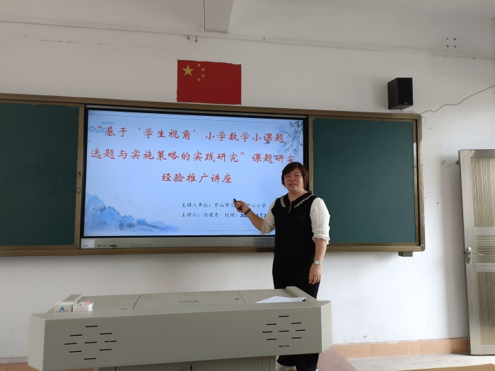 本次對(duì)口幫扶活動(dòng),三角鎮(zhèn)中心小學(xué)教導(dǎo)處馮建青主任還以《如何指導(dǎo)小學(xué)生開(kāi)展數(shù)學(xué)小課題研究》為主題開(kāi)展了交流分享會(huì)。馮主任在小課題研究頗有心得,2021年主持了鎮(zhèn)級(jí)重點(diǎn)課題《基于‘學(xué)生視角’小學(xué)數(shù)學(xué)小課題選題與實(shí)施策略的實(shí)踐研究》,帶領(lǐng)學(xué)校老師和學(xué)生連續(xù)幾年獲得了中山市小課題研究一等獎(jiǎng)的榮譽(yù)。本次分享會(huì)馮主任從確定研究主題、組建研究隊(duì)伍、確定研究?jī)?nèi)容、撰寫(xiě)研究方案、開(kāi)展研究活動(dòng)、整理研究成果六個(gè)方面分享了她在指導(dǎo)小學(xué)生開(kāi)展數(shù)學(xué)小課題研究的做法。分享會(huì)最后,兩校教師還交流學(xué)習(xí)了馮主任帶來(lái)的小課題資料書(shū)。生活中有許許多多的“小課題”,相信聽(tīng)了本次的分享會(huì),教師們會(huì)有更多研究啟發(fā)!