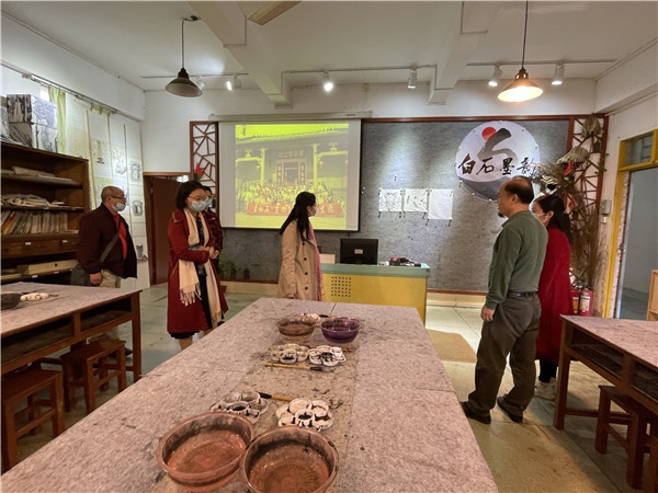 首先,調(diào)研組參觀了學(xué)校的水墨畫工作室。工作室主持人魏勝君老師向調(diào)研專家組展示了墨韻飄香的水墨畫作品并介紹“白石墨韻”的發(fā)展史,據(jù)魏勝君老師介紹,“白石墨韻”八年來一直致力于公益親子水墨活動(dòng),定期開展水墨戶外寫生活動(dòng),探尋三鄉(xiāng)古村古巷,了解名人風(fēng)尚,觸摸古跡之下的厚重歷史,感受濃濃的鄉(xiāng)情和厚重的文化底蘊(yùn),通過親子美育的形式傳承中華優(yōu)秀傳統(tǒng)文化。“水墨畫”教研工作得到了專家組的高度點(diǎn)贊。
