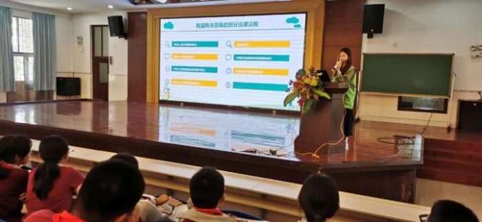 2020年10月15日上午,新圩小學邀請了三鄉(xiāng)鎮(zhèn)禁毒辦的宣傳社工到學校階梯室為六年級學生進行了“開學第一課—以讀攻毒”課程學習,幫助學生正確認識毒品,了解毒品的危害。