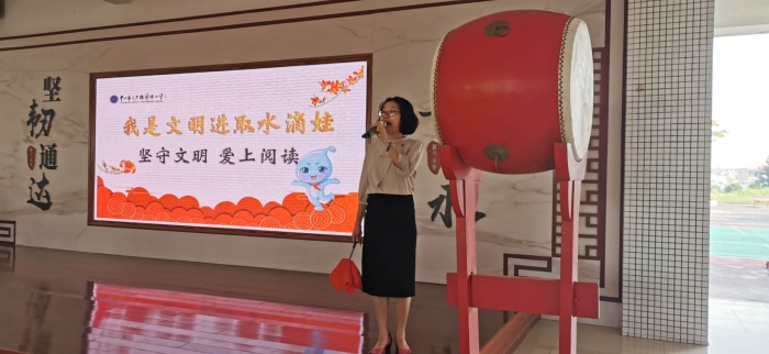 本次升旗儀式活動(dòng)分為三個(gè)環(huán)節(jié),第一環(huán)節(jié)是由肖志紅校長(zhǎng)講話,發(fā)言主題是《我是文明進(jìn)取水滴娃》,肖校長(zhǎng)以一個(gè)關(guān)于麻雀、大雁和雄鷹的故事開(kāi)始了本次國(guó)旗下的講話,她激勵(lì)學(xué)生要以“文明”之名堅(jiān)持讀書(shū),以“文明”之名展示風(fēng)采,并提出了文明課堂、文明用餐、文明個(gè)人這三點(diǎn)倡議,希望全體學(xué)生以實(shí)際的行動(dòng),從小事做起,從現(xiàn)在做起,堅(jiān)持讀書(shū),堅(jiān)守文明,開(kāi)啟更美新學(xué)期。