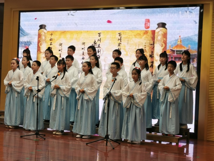 除了新圩小學(xué)領(lǐng)導(dǎo)外,三鄉(xiāng)鎮(zhèn)教育和體育事務(wù)指導(dǎo)中心林榮立副主任、三鄉(xiāng)鎮(zhèn)音樂中心教研組組長、平嵐小學(xué)德育副主任梁藝君先生、新圩村委工作人員何泳鴻先生出席了本次活動。六年級學(xué)生在階梯室現(xiàn)場觀看匯演,其他年級學(xué)生和老師都在班級通過釘釘直播方式觀看,家長們也能及時在云端上看到學(xué)校的精彩節(jié)目。看!雷妍珺老師指導(dǎo)的古箏重奏《云之南》拉開了本次匯演序幕,神秘寧靜的香格里拉,風(fēng)光旖旎的洱海蒼山,美麗熱情的西雙版納彩云之南,那夢幻般神奇的大自然油然而出。接下來的唱誦《長歌行》和《國學(xué)經(jīng)典吟唱》,使我們謹(jǐn)記圣訓(xùn),傳承美德,讓經(jīng)典滋潤童年,讓書香伴我們成長。維妙維肖的舞蹈《進(jìn)新房啦》、優(yōu)美的合唱《大魚》、激情四射,活力滿滿的拉丁舞《旋律》、獨唱《?。⌒切遣荨?、酷炫又熱辣的健美操《街舞的大合集》、整齊有力的歌曲聯(lián)唱《民歌聯(lián)唱》等節(jié)目讓現(xiàn)場掌聲不斷,真可謂精彩紛呈!