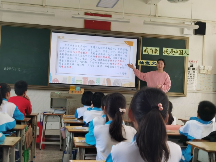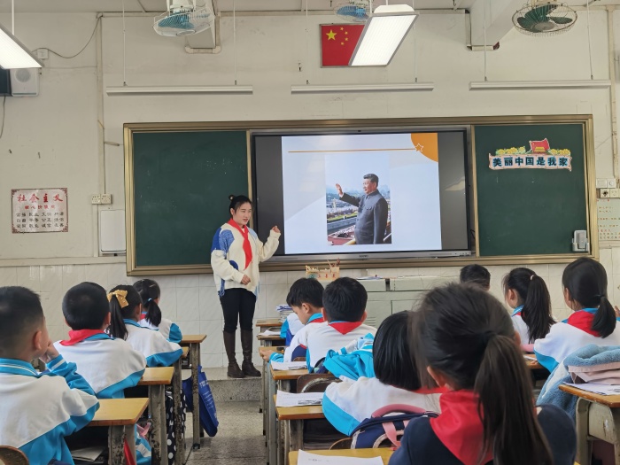 本次匯報(bào)課以《習(xí)近平新時(shí)代中國(guó)特色社會(huì)主義思想(學(xué)生讀本)》為主題內(nèi)容,課堂要求需要學(xué)生通過參與體驗(yàn)活動(dòng),在活動(dòng)中讓學(xué)生對(duì)習(xí)近平的“金句”有認(rèn)知,并深化為行動(dòng)。匯報(bào)課中,四位老師都以最佳的狀態(tài)展示了自己的備課成果。吳少媚師傅指導(dǎo)杜麗娜老師上《美麗中國(guó)是我家》。孩子在杜麗娜老師的引領(lǐng)下了解祖國(guó)、贊美祖國(guó)并以自我身體力行去建設(shè)祖國(guó)。