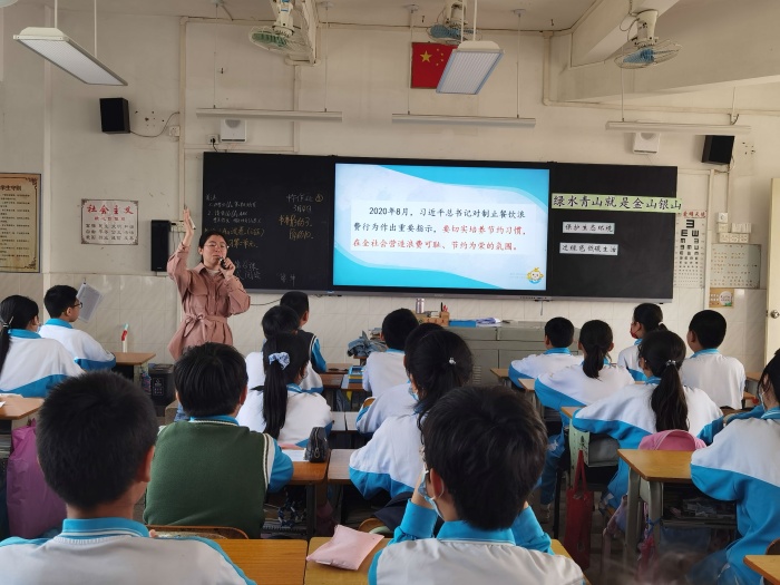 譚麗珍師傅指導(dǎo)楊秋玲老師上《我驕傲 我是中國(guó)人》。楊秋玲老師的設(shè)計(jì)別出心裁,內(nèi)容呈現(xiàn)形式豐富多樣,學(xué)生在感受建筑偉大工程、祖國(guó)燦爛文化和輝煌成就中建立起了學(xué)生的自豪感。李柳燕師傅指導(dǎo)黃雅任老師上《國(guó)家安全是頭等大事》。黃雅任老師的設(shè)計(jì)由淺入深,先以直觀的視頻呈現(xiàn),讓學(xué)生知道什么是國(guó)家安全,再以身邊的典型事例導(dǎo)向?qū)W生的行動(dòng),學(xué)生在思辨中展望自己未來的行動(dòng)方向。劉秋玲師傅指導(dǎo)潘斯敏老師上的《綠水青山就是金山銀山》。潘斯敏老師靈活駕馭課堂,在多個(gè)體驗(yàn)活動(dòng)中讓學(xué)生感受美好生態(tài)是我們?nèi)祟惖南蛲?,學(xué)生在感悟中提出如何更好地保護(hù)生態(tài)環(huán)境,過綠色低碳生活。