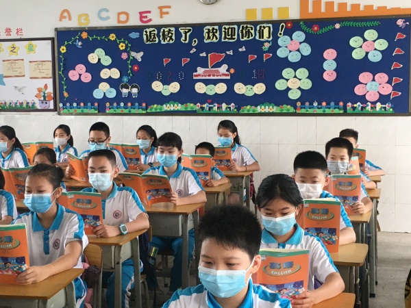 踏入教室,看見熟悉的同學(xué)和親切的老師,大家特別激動,隔著一米的距離在說笑著。孩子們在笑聲中參與了學(xué)校為他們準(zhǔn)備的活動。