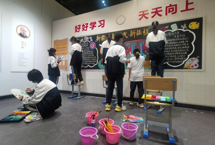 中山市博物館聯(lián)合市教育和體育局籌劃并舉辦“書聲滿香城——中山教育特展”,向公眾展示中山文教歷史,展現(xiàn)香山建縣以來的文化教育成果,助力文化興城。10月19日下午,中山市沙溪理工學(xué)校受中山市博物館邀請進(jìn)行黑板報創(chuàng)作,打造展覽的互動打卡空間。