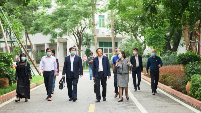 10月19日,中山市教育工委委員、市教育和體育局黨組成員、副局長姜術(shù)俊一行到中山市溪理工學(xué)校進行調(diào)研,深入了解學(xué)校發(fā)展情況,想方設(shè)法共同解決學(xué)校在高水平、高質(zhì)量發(fā)展中遇到的困難。市教體局四級調(diào)研員黃慶財,高職終科科長湯偉勛,安全保衛(wèi)科副科長賴欽輝一起陪同調(diào)研。學(xué)校黨委副書記、副校長盧永輝,副校長葉樹人、楊廷樺、郭冬冬等行政陪同。