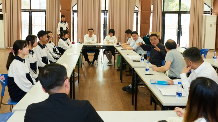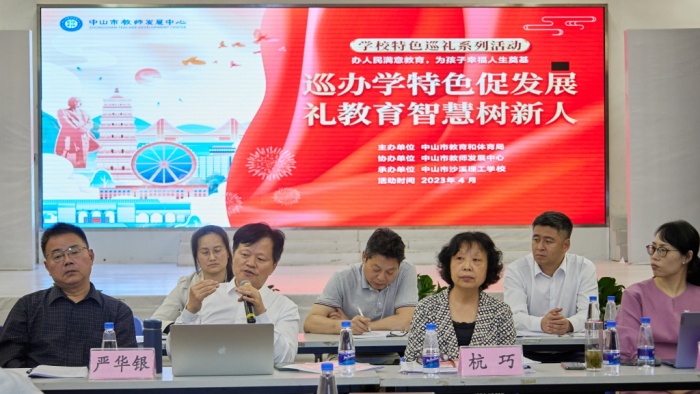 4月11日,中山市學(xué)校特色巡禮暨“接力工程”入校診斷活動中山市沙溪理工學(xué)校專場如約而至。本次活動由中山市教育和體育局主辦,在全市各所直屬學(xué)校設(shè)專場,旨在充分發(fā)揮市內(nèi)優(yōu)秀學(xué)校(幼兒園)的示范作用,總結(jié)和推廣優(yōu)秀校(園)長先進管理經(jīng)驗,培養(yǎng)市內(nèi)教育管理后備人才。在市教師發(fā)展中心副主任徐瑩、副主任周勇、教育管理培訓(xùn)部部長李泳綺等人帶領(lǐng)下,江蘇省中小學(xué)教師培訓(xùn)學(xué)會常務(wù)副會長兼秘書長、教授、特級教師嚴華銀,江蘇省特級教師、正高級教師戎年中,南京市秦淮區(qū)教師發(fā)展中心教科研中心主任杭巧等專家蒞臨學(xué)校指導(dǎo),市直屬中職學(xué)校后備校長及后備副校長入庫人員參加。