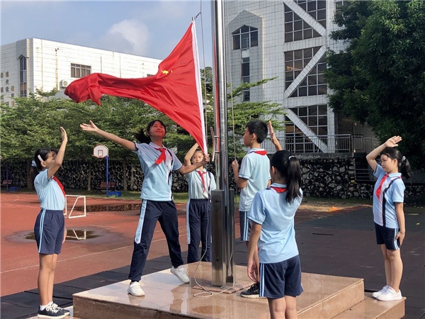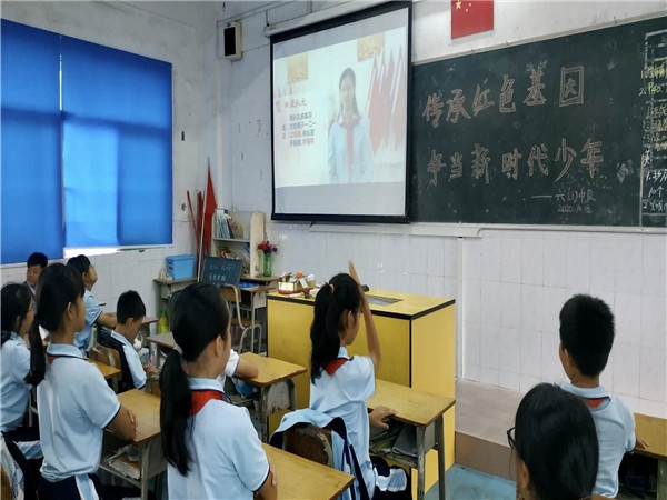 與此同時其他中隊(duì)在教室各自進(jìn)行了“建隊(duì)71周年紀(jì)念日”主題隊(duì)會活動,他們重溫了隊(duì)史、誓詞,糾正了敬禮,最后還唱起了隊(duì)歌和觀看了視頻“致敬紅領(lǐng)巾”。