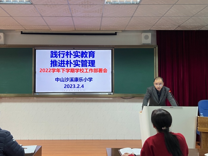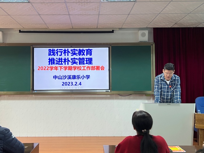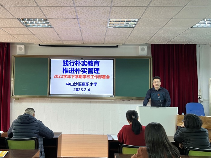 兔年?yáng)|風(fēng)春來(lái)早,揚(yáng)帆奮進(jìn)正當(dāng)時(shí)。為確保新學(xué)期開(kāi)好局、打好底、起好步,進(jìn)一步統(tǒng)一思想、凝心聚力,2月4日上午,中山沙溪康樂(lè)小學(xué)在學(xué)校報(bào)告廳召開(kāi)題為《踐行樸實(shí)教育,推進(jìn)樸實(shí)管理》2022學(xué)年下學(xué)期學(xué)校工作部署會(huì),全體教師參加會(huì)議。