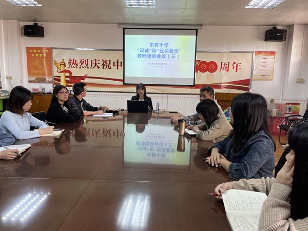 11月15日,沙溪鎮(zhèn)樂群小學(xué)全體教師齊聚學(xué)校會議室,開展“雙減”政策下學(xué)科作業(yè)設(shè)計和作業(yè)管理大討論。