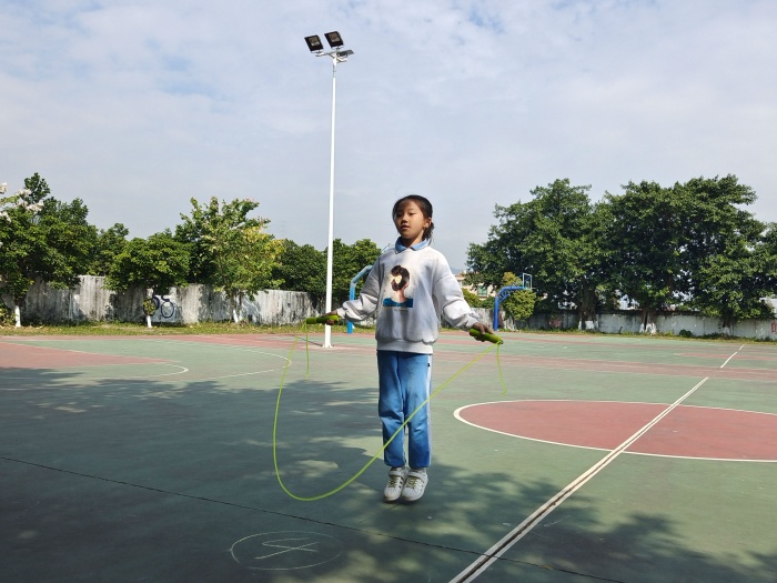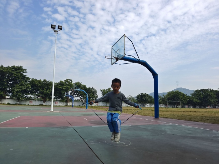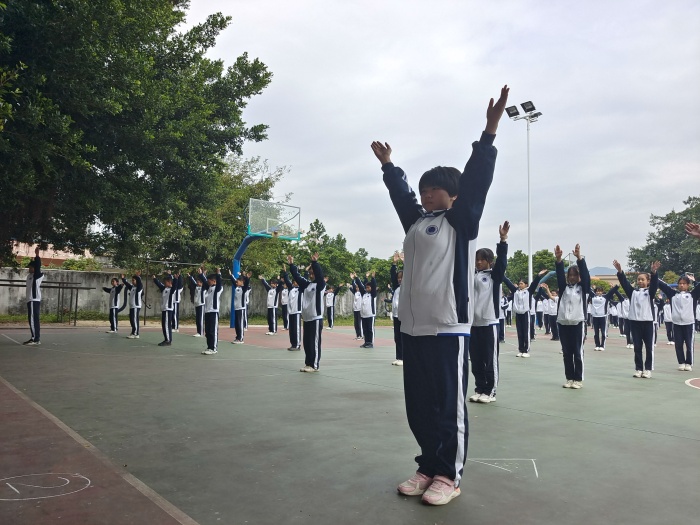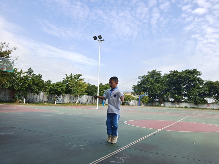 此次體育節(jié)活動,共分成了三個板塊:一至六年級跳繩比賽,七、八年級廣播操比賽和九年級投籃比賽 。首先舉行的是七、八年級廣播操比賽,在班主任老師的帶領下,同學們統(tǒng)一著裝,邁著整齊的步伐進入比賽場地。隨著音樂響起,同學們動作標準、整齊劃一。九年級的同學們也不甘示弱,他們以高漲的熱情投入到比賽當中,用自己一次次進球,向同學們宣示著自己的實力。接著舉行的是一至六年級的跳繩比賽,在一聲令下,激烈的角逐開始了。同學們揮動著雙手,跳繩一次次抽打著地面,穩(wěn)定的呼吸,靈活的身姿,精準的節(jié)奏,跳的人還在頑強奮戰(zhàn)而看的人已是眼花繚亂。