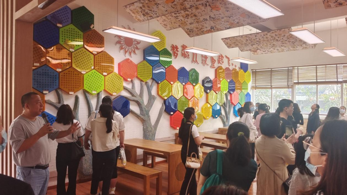朗晴小學(xué)張鵬副校長熱情洋溢地分享校園文化建設(shè)紀(jì)實(shí),如“朗晴校徽”“童眼看世界”“朗晴校史室”、各具特色的五大教學(xué)樓、朗晴版畫等等,通過張校長的闡述,在場的每一個(gè)人都深刻地了解到朗晴背后的故事,深切地感受到一段故事即是一段歷史,尤為珍貴;特別是“笑臉墻”,保留著每一屆孩子們的笑臉,這對于孩子們來說無疑是彌足珍貴的一份回憶,多年想起,依然會有溫暖的歸屬感。