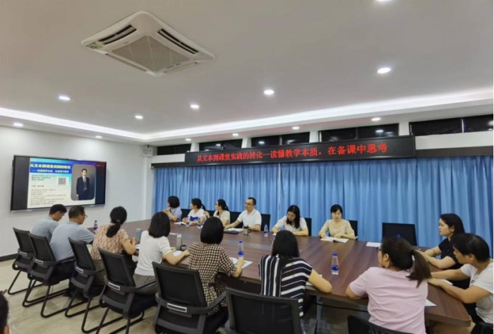第二、《新課標》視域下備課的智慧。陳永暢副校長從備課的整體性和靈動性兩個方面展開了詳細的講解。整體性方面主要從教參如何“讀”進行剖析,包括:一讀整冊概述,二讀單元分析,三讀學習目標,四讀教學建議。靈動性方面主要從教材如何“解”三個方面介紹,講到教師要用聯(lián)系的眼光審讀教材,要關注教材中的重要信息,用教材以“外”的信息反思教材設計,促使教師進一步理解新課標的內涵,提升精準備課的能力。