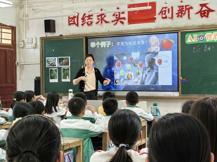 陳宏珊副主任執(zhí)教了信息科技課《AI看世界》,陳老師從認識身邊常見的植物引入,以“機器認識蘋果”為例,帶領學生了解AI識圖的過程,并運用“形色”“騰訊AI開放平臺”等工具,通過猜想—觀察記錄—小組實驗—驗證結(jié)果的教學模式,讓學生愉悅地體驗“AI看世界”的方式,培養(yǎng)學生信息素養(yǎng)及思維能力。課堂上,孩子們認真聽課、思考、互動、實踐,從孩子好奇的眼神看出對知識的渴望,從孩子專注的神情看出體驗的愉悅。科技的魅力無限,在孩子心里埋下熱愛的種子。