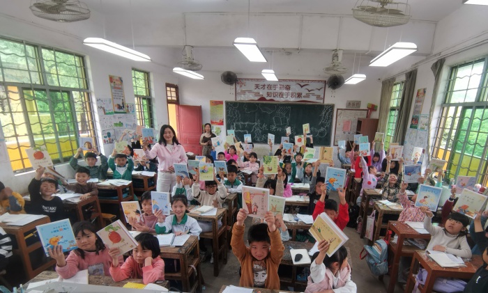 在玉二小學的升旗儀式上,中山市實驗小學開展了贈書活動,捐贈了一批適合青少年閱讀的文學經(jīng)典,希望好書豐富玉二小學孩子們的校園文化生活。新書拿在手,兩個書香示范班的孩子們開心地笑了。
