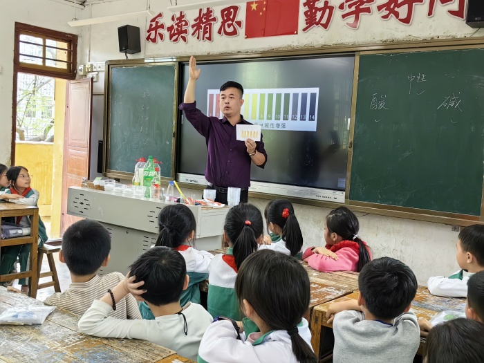 姜克旺老師給三年級的學生帶來了一節(jié)別開生面的科學課《酸堿的秘密》,他帶領孩子們在各種實驗和實際操作中一步步走向科學的真相,學生利用檢測試紙去探究生活中白醋,洗衣粉等物質(zhì)的酸堿性。學生又用氣球收集到酸堿反應生成的氣體。學生沉浸在一個個神奇有趣的科學實驗中,科學的種子在心田萌發(fā)。課間,姜老師又在操場帶領全校學生發(fā)射了水火箭,氣動火箭,空氣炮等,學生在一陣陣尖叫聲中感受到了科學的神奇。