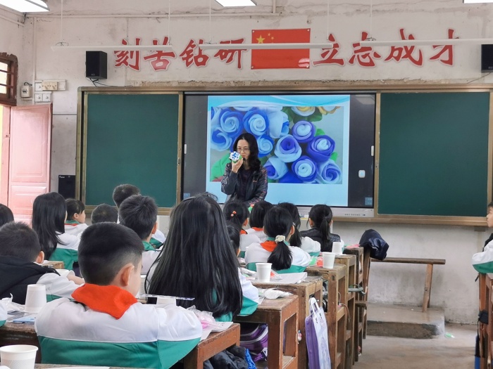 李衍老師依據(jù)玉二學校的學生實際情況結(jié)合美育之“審美教育、情操教育、心靈教育”三個維度的美育內(nèi)涵內(nèi)容,設計生動有趣的粘土制作課。讓學生在課堂上體驗美術核心觀念和思維方法。短短的一節(jié)課,孩子們用雙手揉出了美麗的花,體驗了由平面到立體造型的轉(zhuǎn)變。引導孩子們表達了對母親的愛和關心。孩子們專注的模樣永遠停留在時光之中,定格在一張張照片中,教與學的快樂譜寫出師生共同美好的回憶。這節(jié)課如同一滴小水珠,在陽光下折射出七彩的光。愿藝術之花在孩子們心中綻放光彩。