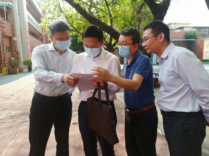 領(lǐng)導(dǎo)們首先了解了近日中山突發(fā)事件對學(xué)校教育教學(xué)工作的影響,對學(xué)校師生在沙溪、大涌、西區(qū)三地旅居史情況進(jìn)行了詳細(xì)詢問,認(rèn)真聽取了劉曉君校長對師生返校情況和學(xué)校疫情防控部署的匯報(bào)。