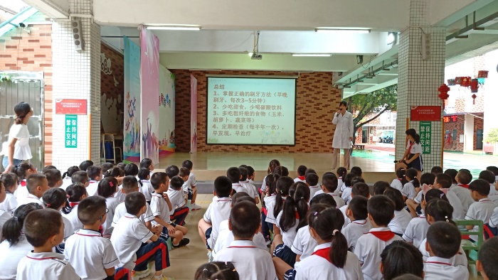 金風(fēng)送爽,桂子飄香。在全國(guó)第31個(gè)“全國(guó)愛(ài)牙日”來(lái)臨之際,為了讓學(xué)生對(duì)牙齒有更深入了解,培養(yǎng)愛(ài)護(hù)牙齒、保護(hù)牙齒的意識(shí),從而養(yǎng)成口腔清潔的好習(xí)慣。2022年9月19日,石岐太平小學(xué)開(kāi)展了“護(hù)牙健齒少年強(qiáng) 健康中華民族興”的口腔健康教育宣傳系列活動(dòng)?;顒?dòng)特意誠(chéng)邀口腔診所的陳醫(yī)生,給同學(xué)們進(jìn)行了一次有趣的口腔健康知識(shí)講座。