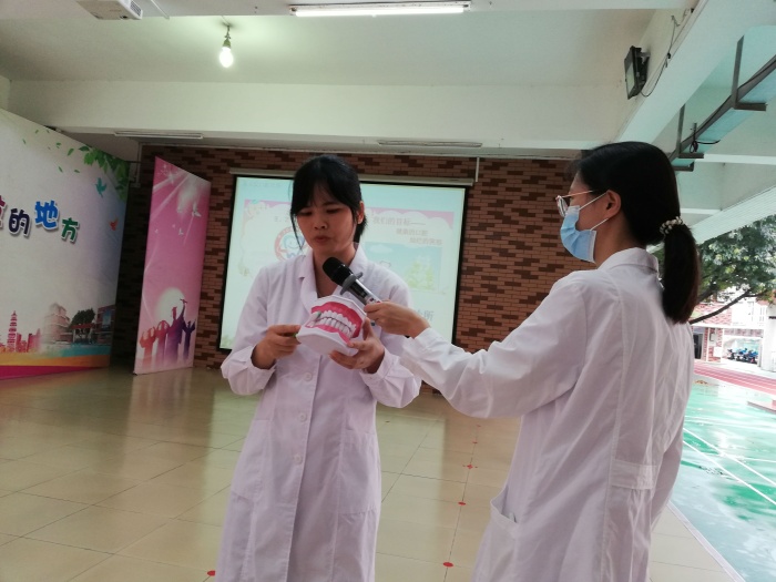 活動(dòng)現(xiàn)場(chǎng),陳醫(yī)生帶領(lǐng)同學(xué)們認(rèn)識(shí)了牙齒的外形,結(jié)構(gòu),形態(tài)及功能,講述了典型的牙齒問(wèn)題——齲齒,細(xì)致地講解了齲齒發(fā)生的主要原因及發(fā)展過(guò)程,隨后,現(xiàn)場(chǎng)演示了正確的刷牙方法,并給同學(xué)們提出建議:希望大家可以堅(jiān)持做到飯后漱口,早晚刷牙,定期檢查,保護(hù)好自己的牙齒。