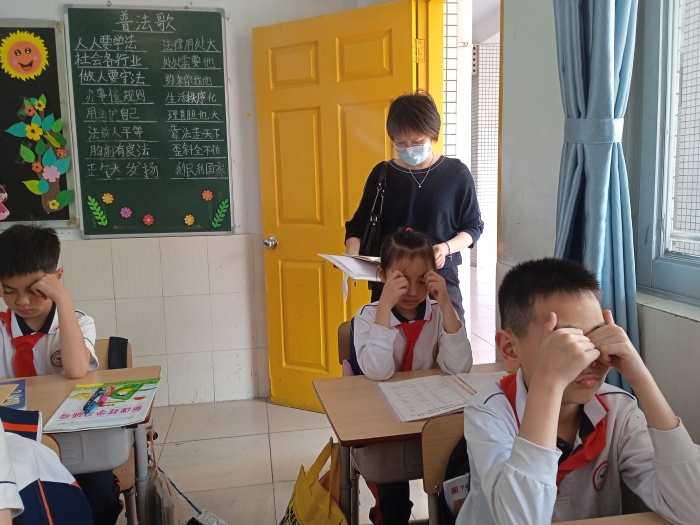 緊接著,督學(xué)鄭結(jié)霞校長查看了該校的校園環(huán)境。看到學(xué)校校園干凈整潔;各班教室桌面、地面、墻面整潔,文化布置有特色、有主題,她贊賞有加。同時,她還檢查了學(xué)校課程的落實(shí)情況,與學(xué)生們親切交談,詢問了學(xué)生的作業(yè)量情況和睡眠情況等等。