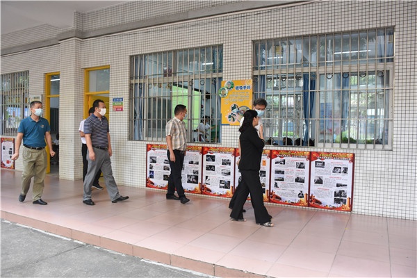 段主任一行還參觀了學校的校園文化。校園,是師生朝夕相處的主要場所,同時也是育人的主陣地。暑假里,學校馬不停蹄,重新設(shè)計校園文化。開學后,煥然一新的校園文化吸引了同學們求知的目光,“會說話的墻壁”時刻給他們傳播“中國精神”、法治知識等。