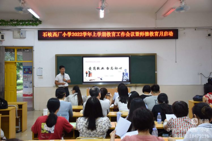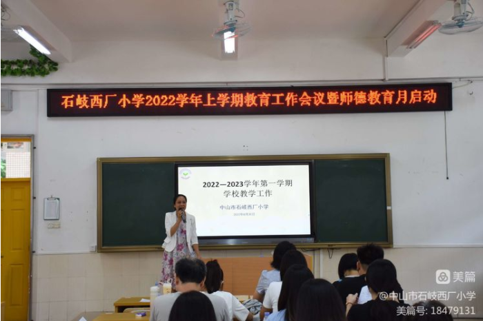 德高為師,身正為范,師德是一切教育教學(xué)活動(dòng)開(kāi)展的靈魂與前提。為推動(dòng)新學(xué)期各項(xiàng)工作有序開(kāi)展,增強(qiáng)全體教職工凝聚力,加強(qiáng)師德師風(fēng)建設(shè),2022年8月30日上午,石岐西廠小學(xué)召開(kāi)2022學(xué)年第一學(xué)期開(kāi)學(xué)工作暨師德師風(fēng)教育專(zhuān)題會(huì)議,全體教職工都以嶄新的面貌迎接新學(xué)期的到來(lái)。本次會(huì)議由吳海棠副校長(zhǎng)主持。