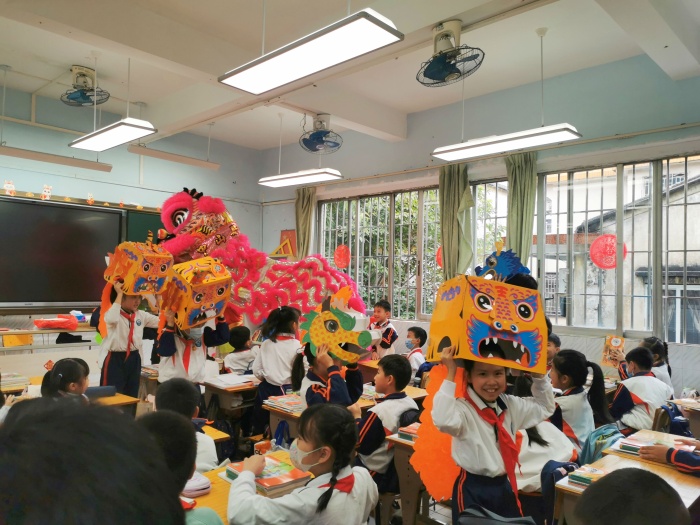 開學(xué)典禮上,“醒獅隊(duì)”也來(lái)向全體師生拜年。典禮結(jié)束后,兩只獅子分別到班級(jí)為開學(xué)采青,這也是該校進(jìn)行傳統(tǒng)文化教育的一大舉措,在學(xué)校常規(guī)活動(dòng)中進(jìn)行傳統(tǒng)文化的熏陶。