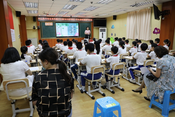 5月20日下午,中山市中華優(yōu)秀傳統(tǒng)文化教育東部片區(qū)聯(lián)盟督導(dǎo)組專家晏利紅副校長、陳玉萍組長、鄭亞文主任、趙雪爽老師、王春宇老師以及兄弟學(xué)校的多位老師,蒞臨中山市石岐中心小學(xué)進(jìn)行傳統(tǒng)文化教育工作指導(dǎo)。石岐中心小學(xué)王文儒副校長、鄭秀明主任及課題組骨干教師全程參加本次活動。