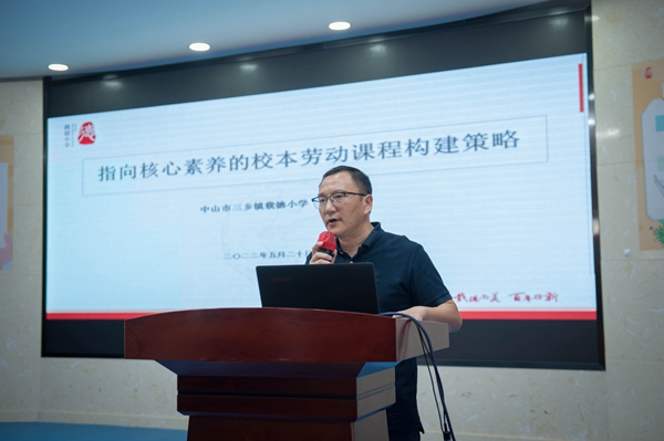 為構(gòu)建德智體美勞全面培養(yǎng)的教育體系,加強(qiáng)新時(shí)代勞動(dòng)教育,更好地貫徹《中共中央國(guó)務(wù)院關(guān)于全面加強(qiáng)新時(shí)代大中小學(xué)勞動(dòng)教育的意見》,2022年5月20日,中山市周錦連名校長(zhǎng)工作室開展了“加強(qiáng)勞動(dòng)教育,構(gòu)建五育并舉育人體系”教研論壇活動(dòng)。此次活動(dòng)在中山市三鄉(xiāng)鎮(zhèn)載德小學(xué)舉行。中山市教師發(fā)展中心“三名”管理辦公室周立勝主任,中山市教育教學(xué)研究室馮玉生部長(zhǎng),中山市名校長(zhǎng)工作室主持人周錦連校長(zhǎng)及工作室的全體成員參加了此次活動(dòng)。