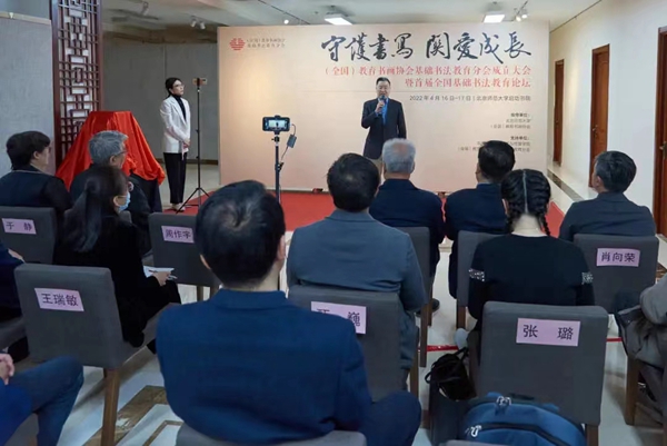 撰稿:公春江 審稿:唐鴻雁 二審:黃建喜 三審:周錦連 發(fā)布:區(qū)泳秋 近日,“守護(hù)書寫,關(guān)愛成長”(全國)教育書畫協(xié)會基礎(chǔ)書法教育分會成立儀式暨首屆全國基礎(chǔ)書法教育論壇在北京師范大學(xué)啟功書院隆重舉行。基礎(chǔ)書法教育分會是(全國)教育書畫協(xié)會(教育部直屬)批準(zhǔn)的全國性文化團(tuán)體,隸屬于(全國)教育書畫協(xié)會。因受疫情影響,開幕式采取線上方式同步直播。教育部、北京師范大學(xué)、中國書協(xié)、中國教育學(xué)會等單位領(lǐng)導(dǎo)出席成立儀式。來自全國基礎(chǔ)書法教育一線的領(lǐng)導(dǎo)、專家、省市書法教研員、書法教師代表等500多人通過線上線下結(jié)合的方式參加了開幕式暨書法教育論壇。