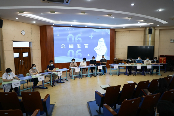 總結(jié)階段,學(xué)校衛(wèi)生健康副校長(zhǎng)肖小華充分肯定了本次演練的效果。她認(rèn)為本次演練能按照相關(guān)文件要求,涵蓋特殊情境下應(yīng)急處置的關(guān)鍵環(huán)節(jié),也能按照預(yù)案迅速啟動(dòng)校內(nèi)應(yīng)急處置機(jī)制,有詳細(xì)的任務(wù)和分工,還關(guān)注到了流調(diào)、轉(zhuǎn)運(yùn)、在線教學(xué)開展、后勤保障、心理疏導(dǎo)與家校溝通等方方面面的重點(diǎn)環(huán)節(jié)。學(xué)校在組織、實(shí)施疫情防控應(yīng)急處置桌面演練過程中表現(xiàn)出了很強(qiáng)的執(zhí)行力、科學(xué)性、專業(yè)性和可操作性。希望在接下來的工作中,進(jìn)一步加強(qiáng)部門間的聯(lián)動(dòng),優(yōu)化各部門處置流程;細(xì)化工作職責(zé),做到“責(zé)任到崗、任務(wù)到人”;建議學(xué)校要思考極端情境下,非寄宿制學(xué)校的后勤保障方面面臨的嚴(yán)峻挑戰(zhàn)。