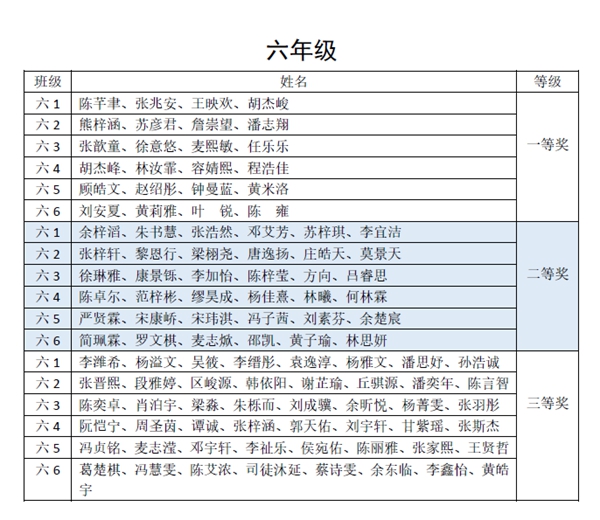 通過(guò)評(píng)委初評(píng)和交叉復(fù)評(píng),以班級(jí)為單位,每班評(píng)出一等獎(jiǎng)4幅,二等獎(jiǎng)6幅,三等獎(jiǎng)8幅。評(píng)委老師發(fā)現(xiàn)同學(xué)們的書(shū)法作品筆畫(huà)遒勁,結(jié)構(gòu)舒展,章法協(xié)調(diào),在不斷進(jìn)步中。現(xiàn)將獲獎(jiǎng)名單和部分獲獎(jiǎng)作品展示出來(lái),供大家欣賞。