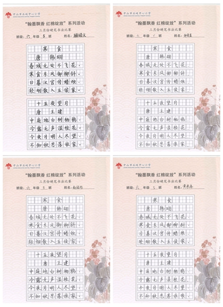 為傳承和弘揚(yáng)中華優(yōu)秀傳統(tǒng)文化,激發(fā)學(xué)生學(xué)習(xí)書(shū)法的熱情,引導(dǎo)學(xué)生和家長(zhǎng)高度重視書(shū)寫(xiě)教育,提高書(shū)寫(xiě)質(zhì)量,石岐中心小學(xué)書(shū)法科組舉辦了全校學(xué)生現(xiàn)場(chǎng)硬筆書(shū)法比賽。