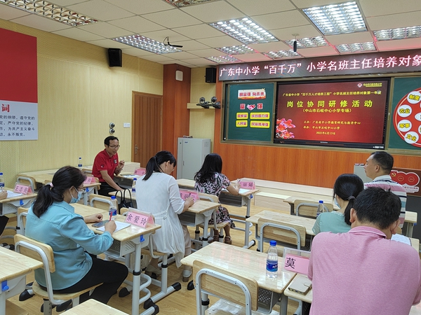 2022年6月13日,廣東省中小學(xué)“百千萬人才培養(yǎng)工程”小學(xué)名班主任培養(yǎng)對象協(xié)同研修活動在中山市石岐中心小學(xué)拉開了序幕。活動邀請了省名班主任及工作室主持人張麗娟老師、省名班主任黃平老師作為指導(dǎo)老師。石岐中心小學(xué)盧超文副校長和省“百千萬”小學(xué)名班主任培養(yǎng)對象麥麗芬、莫杰、余愛玲、溫彩娥、王志亮、黃麗云以及工作室成員一起參加了研修活動。