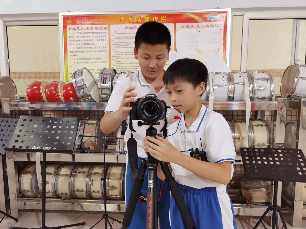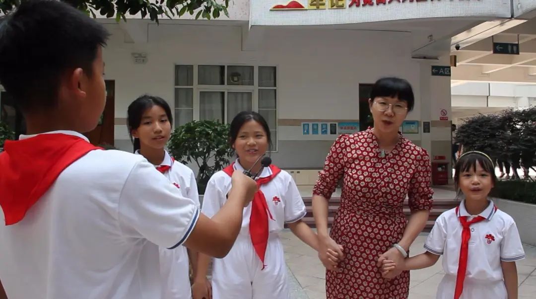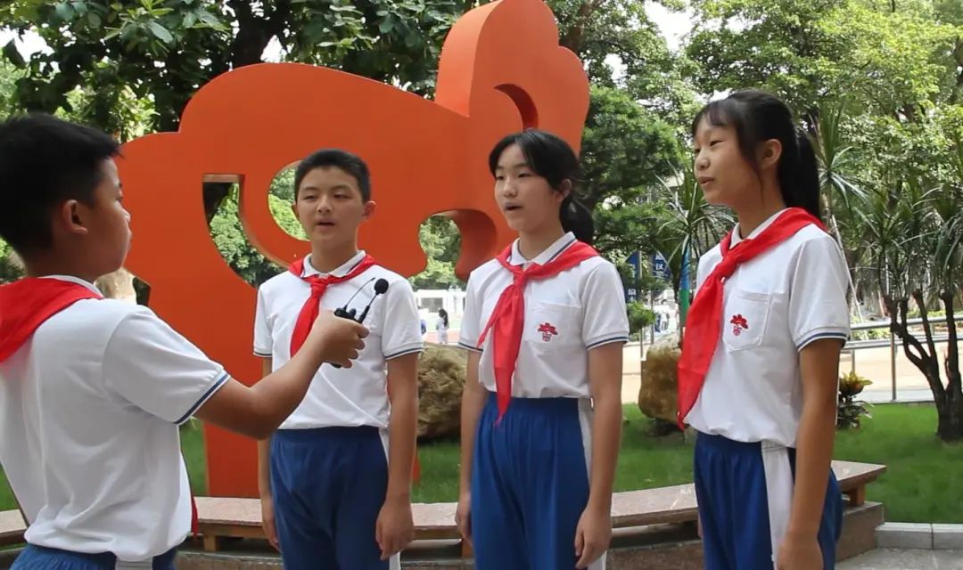 在前期籌備中,他們很快做好分工,邀請老師參與拍攝。由獲得過省、市、校級紅棉之星的隊員來擔任演員,不僅起到了積極的宣傳作用,也給紅棉之星一個展示的平臺。大家一拍即合,“紅棉小先鋒劇組”正式啟動。隊員們分工合作,有的編寫劇本,有的制作課件,有的負責拍攝。雖然有的鏡頭要“NG”幾十次才成功,但他們沒有埋怨,只有歡聲笑語和互相鼓勵,大家都樂在其中。